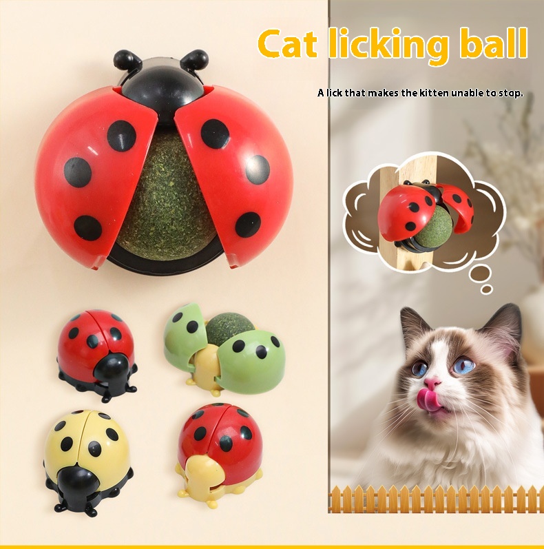 KFX-8207165 Ladybird Catnip Ball Toy for Pet Relaxation and Dental Care - Various Colors Available