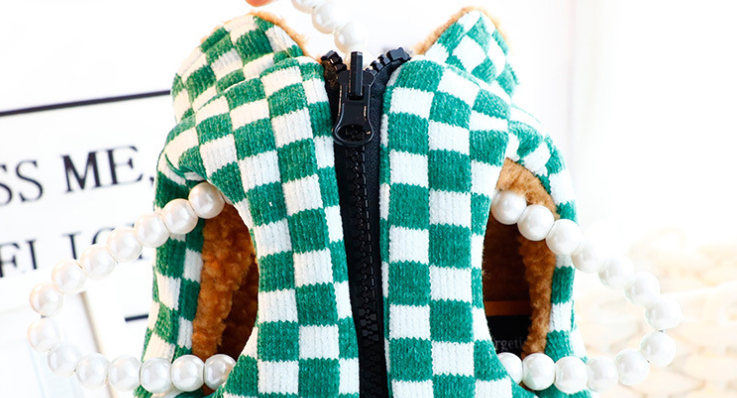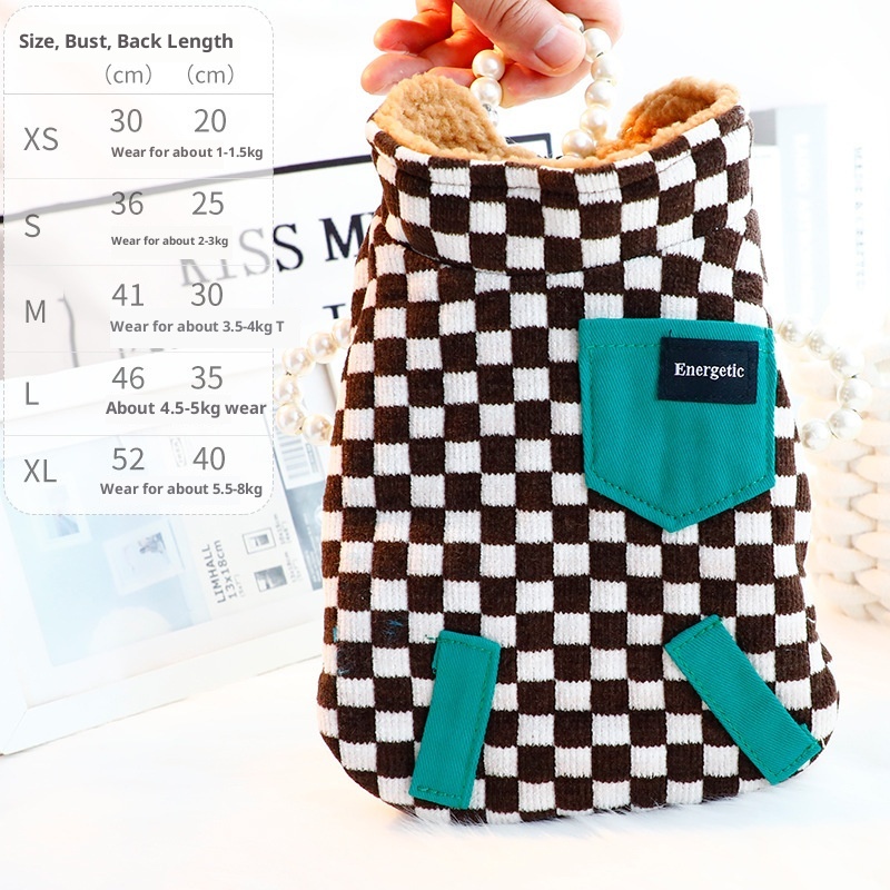Introducing the KFX-6515901 Thick Double-Sided Velvet Vest, a stylish and cozy addition to your pet's wardrobe. This vest comes in three delightful plaid designs: coffee white plaid, green and white plaid, and black and white plaid. Each pattern adds a touch of charm while ensuring your pet stays comfortable during chilly outings.