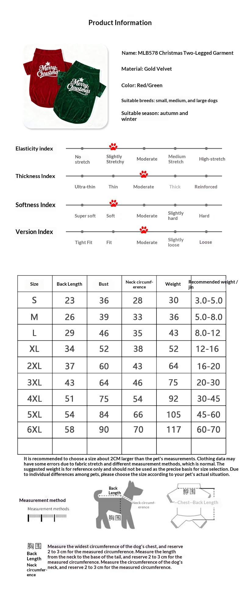 Crafted from high-quality polyester, this pet attire is soft, durable, and easy to maintain. It is designed to accommodate a wide range of sizes, from S to 6XL, ensuring that every pet, regardless of their size, can enjoy the warmth and style this clothing offers. The universal fit means it is suitable for pets of all genders, making it a versatile addition to any pet's wardrobe.